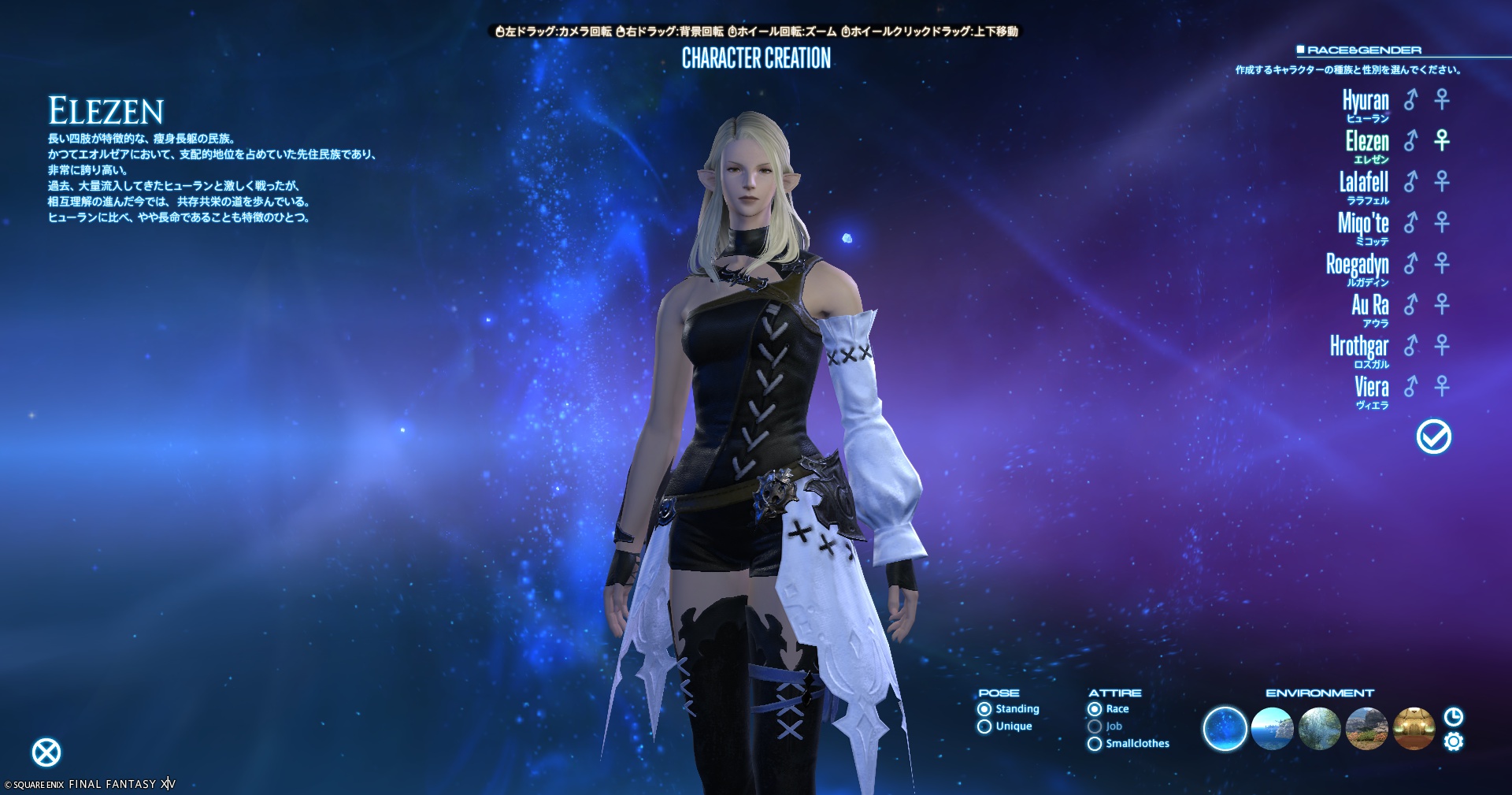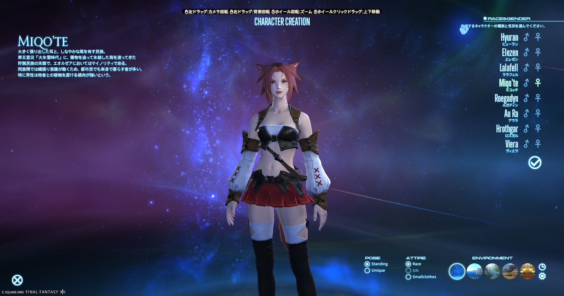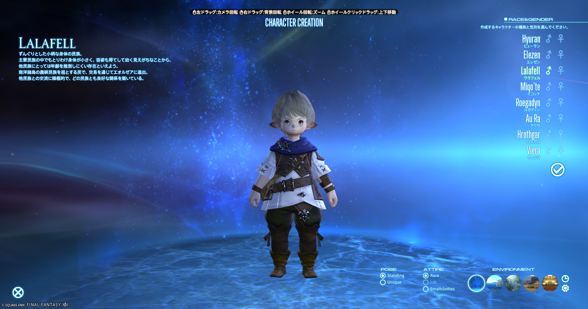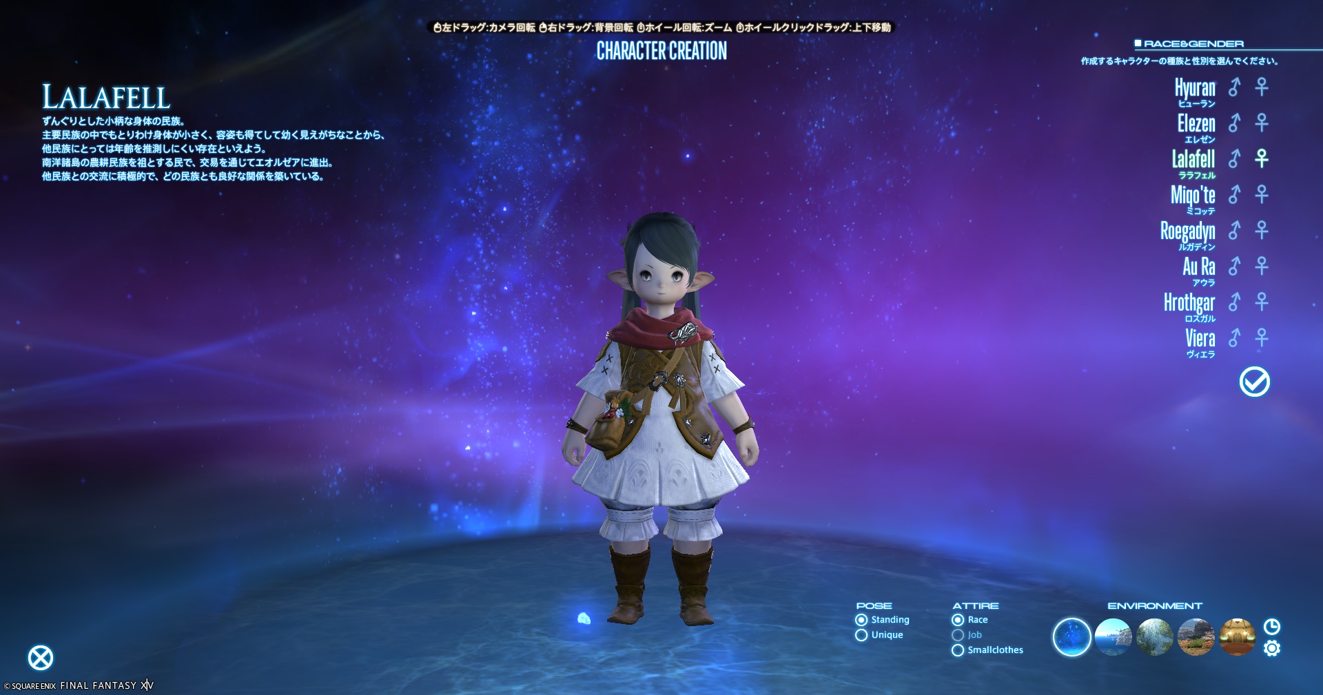 各種族には独自の外見や特徴があります。猫耳が好きならミコッテ、筋肉質が好みならルガディン、可愛さを求めるならララフェルなど、自分の好みに合った外見を選びましょう。
