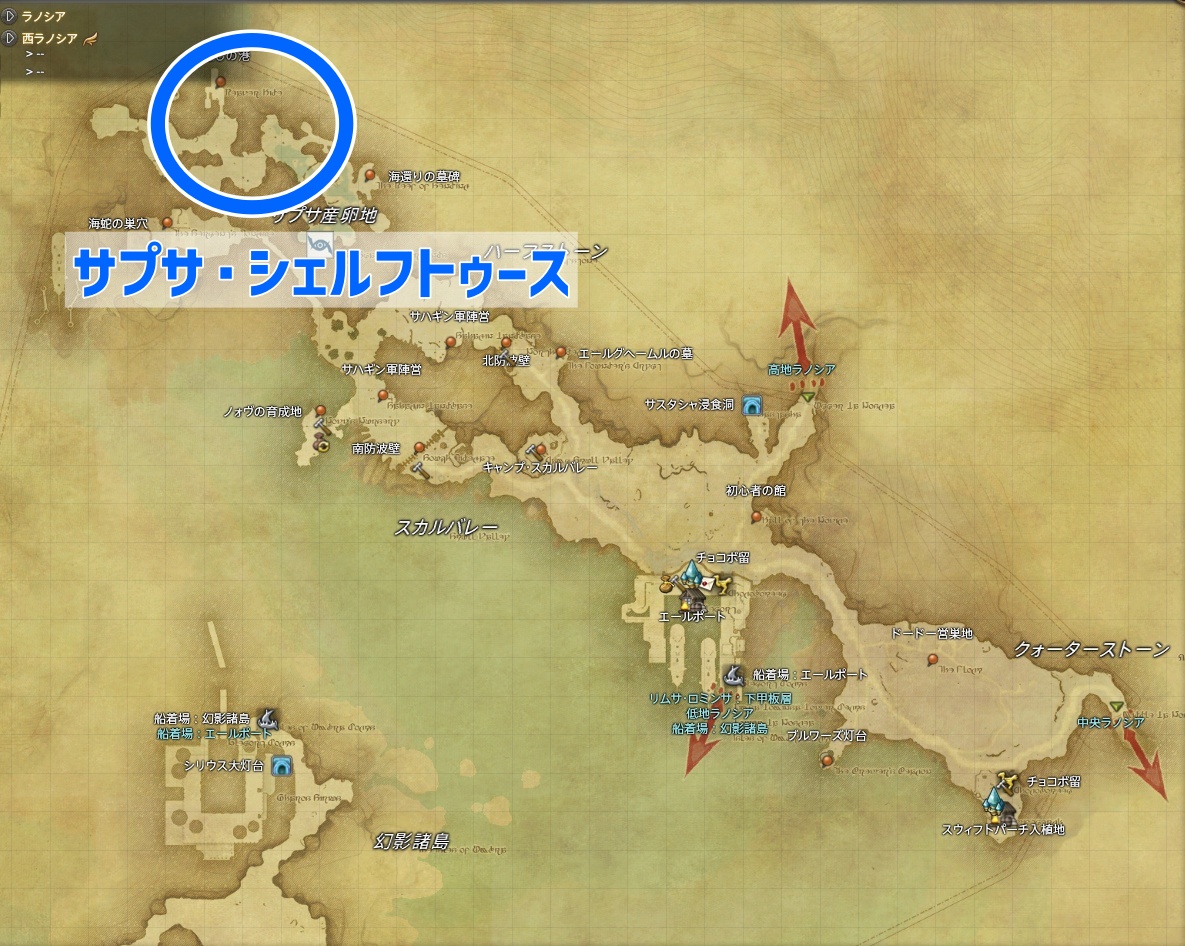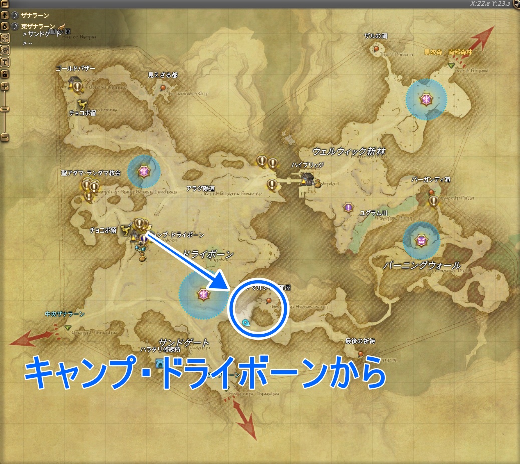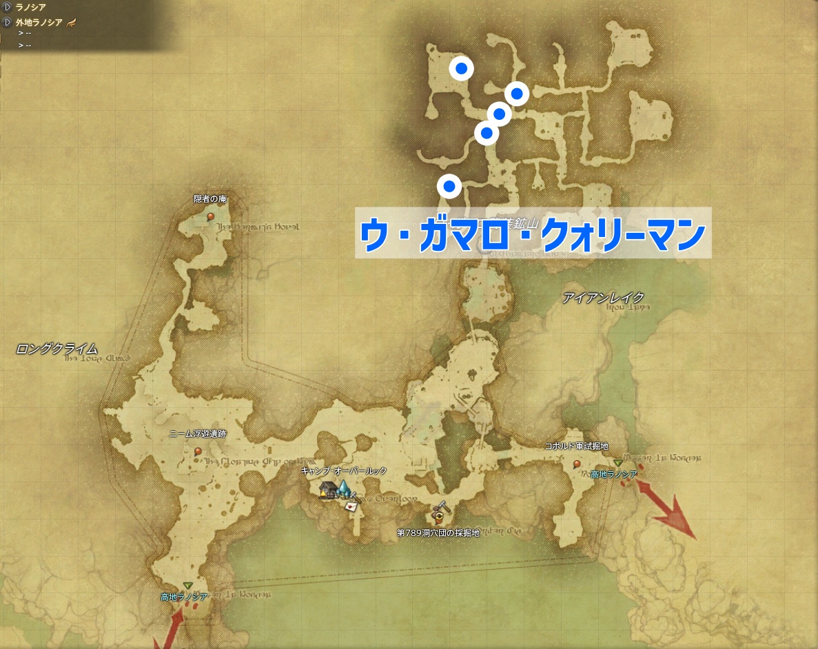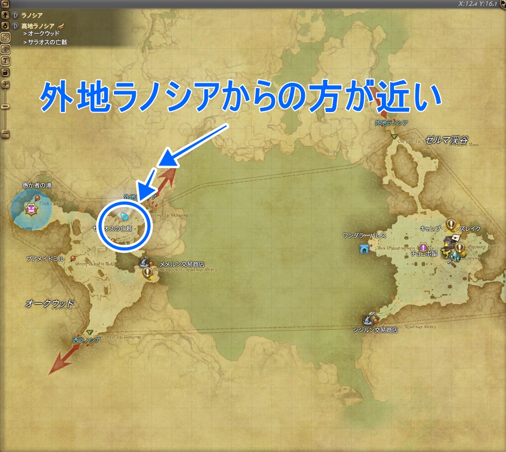 ルートの開始点は双蛇党なのでグリダニアからにしています。(ルートはテレポが安い順)
