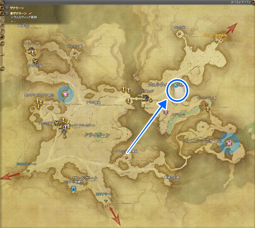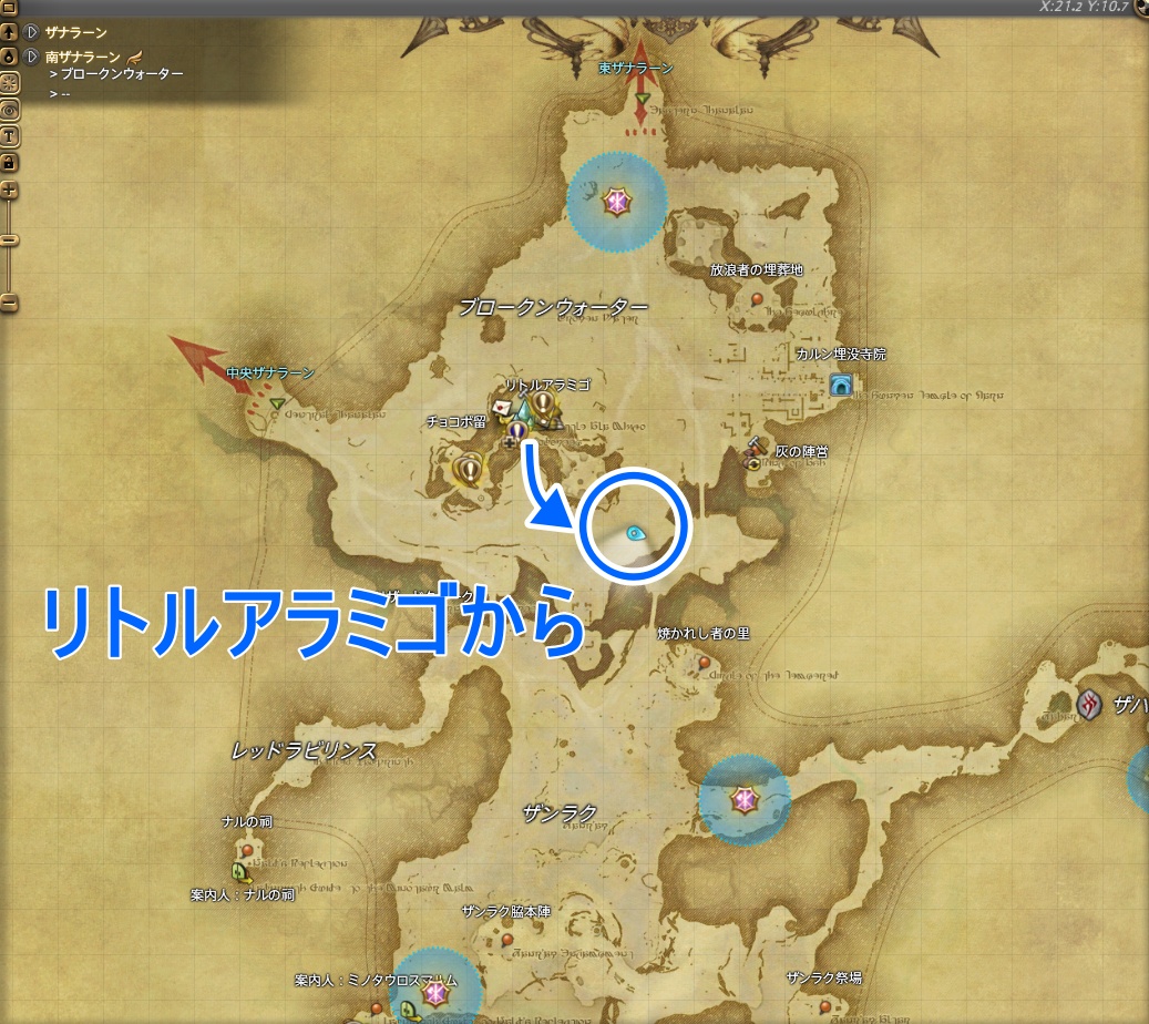 ワンダラーパレスの解放は、西ザナラーン(X:11.5 Y:13.9)のアリーンのクエストでできます。