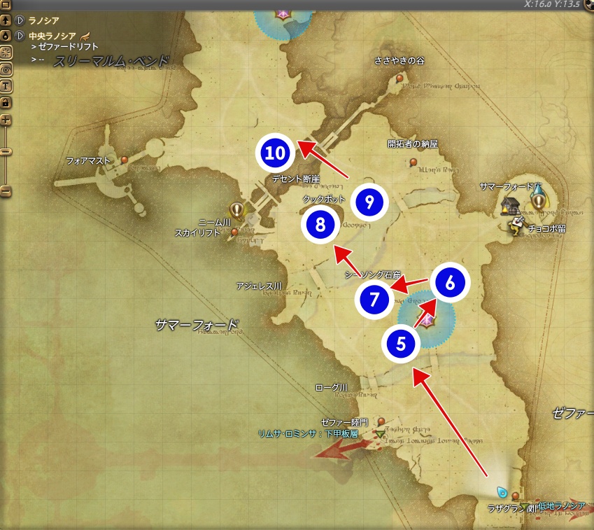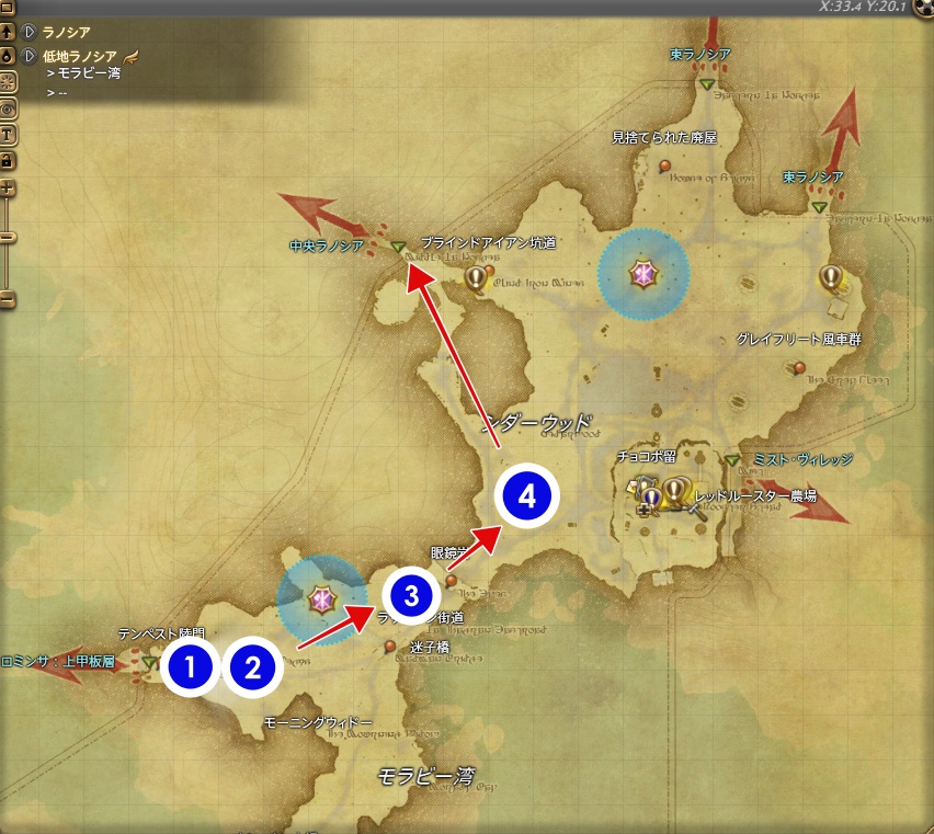 中央ラノシアでの討伐ルート
