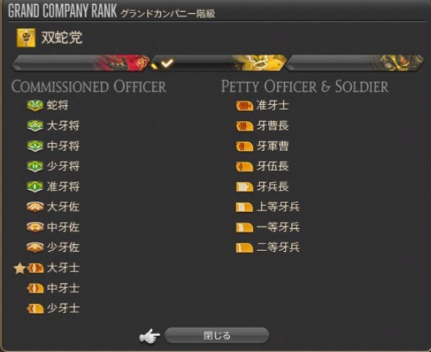 | 准士官(准〇士) | グランドカンパニーリーヴで新たな任務受注できるようになる。 |